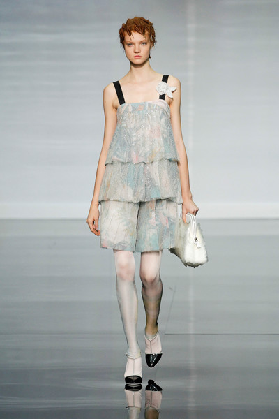 The Emporio Armani ss2014 show presented a gentle, feminine collection in watery pastels and blurred florals on languid tailoring and cocktail-dresses. cialis prices There were small, cardiganlike jackets in papery and glossy fabrics; wide-leg pants that sometimes narrowed toward the ankle and short, shoulder-baring dresses with tiered ruffles or light metallic embroideries.