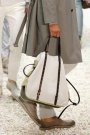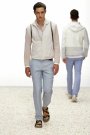 Some of the more relaxed looks contained shorts (right above the knee), relaxed sweaters, comfy leather flip flops and shiny parka’s all in faded shades of grey, sand, beige, lavender, taupe, bole and green.