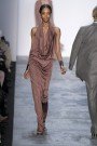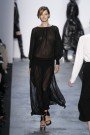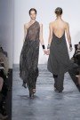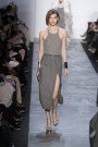 Even by Kors standards, this was the purest of collections, worked almost exclusively in a palette of neutrals and, tone-on-tone neutrals. The prevailing line was lean and structured (a tricot tunic and trousers), languid (a jersey dress and pyjamas) and racy (stretch jersey jumpsuits). For every clean charcoal flannel jacket and straight-leg trouser, there was a clingy cocktail dress or gown. He loves a tunic for Fall, but they shared the runway with bodysuits. The magic word here was sleek. Nearly every look in the show was monochrome, the better to create that long, uninterrupted line Kors favors. Eveningwear was sparkling and glamorous.