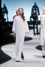 Gracefully dressed women walked his runway in soft modern dresses and skirts. Again materials were combined in one look. Like for instance a pink dress with a diagonal leather band on it. Or a woolen embroidered version with a metallic part on the models’ breast. And not to mention those gorgeous evening gowns which had transparent sleeves or fronts and lottts of tule.