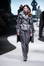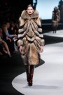The fall-collection of Roberto Cavalli is, well, a classic Cavalli: glamorous and strong, with lots of leather and fur. It started with maxi fur ballgown skirts with sequin luxe T-shirts and feathered baseball caps all in one look. Then came elbow-length gloves and little puffy skirts on little halter dresses strewn with sequins and beads and more baseball caps to go with it all. It had a more grunge feeling then last season. The biggest surprise however, was Naomi Campbell who closed the show.