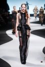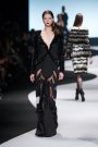 In line with the silky pajama for day wear trend the Dutch designers sent their first few girls on the runway in silk printed and draped ones. Extremely luxury pj’s those were with sparkly collars and fur cuffs. V&R even added some of their larger than life details, like enormous sleeves attached to the models shoulders like a sort of cape.