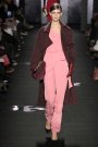 Romantic and very feminine, in an almost cliche way – that’s what Thakoons fall collection reflected. An undercurrent of sly irony and subversive sexuality coursed through the collection, winking at bad taste along the way. A camel coatdress that looked plain and proper from the front had an exciting purple leopard-printed pony collar and a leather basket-weave panel in the back. Crinkled patent leather came in black and wild pink. Chubby sweaters were laced with Mongolian fur. And for the girl who doesn’t wear her heart on her sleeve, there was chic understatement too, such as a black halter — completely backless — worn with matching trousers.