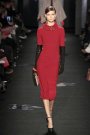 Victoria Beckham stayed true to her specific style of dressing: simple, lean and sexy – but this time she added some military influences to her fall collection. The sportiness of last season was gone. Beckham focused at her favorite garment: dresses. They came in strethced knits, were body hugging and stopped right above or just below the knee. There was a buttoned-up feel with pointed collars hovering at the neckline of many of the pieces, shown in an army green, black, brown, orange, and sky blue.