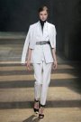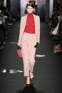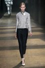 Phillip Lim challenged himself this time with a graphic collection in mostly black and white, with some added neutral tones and some brights at the end. The suiting was beautifully tailored, the perfect middle ground between nonchalant and professional. The tapered trousers and soft blazers remained. Lim started with the idea of comic books, which resulted in a duality of shapes, creating a slimming, curvaceous tromp l’oeil silhouette. It also played out well with the houndstooth pattern.