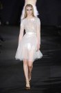 The show went from dark to light, beginning with all-black looks on brunette/black models, then a blue section on girls with light brown hair, followed by the ivory and gold finale shown on blondes. With this collection Gurung moved away from the ladyfied looks that got him noticed in the first place.