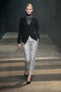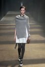 Lim introduced chunky knits and tweedy greys. More texture was developed through cable detailing on sweaters, filmy transparent panels, , and sheeny damask. Towards the end, Lim welcomed colors, like blues, deep green and tangerine.