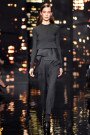 Donna Karan’s whole career has been inspired by New York City. For Fall she used the nighttime skyline as a backdrop for the runway, and made the blacks and grays of the buildings and the glinting golds of their lights her show’s central colors. Perched on platform sandals or boots, the collection’s long, lean silhouette owed something to the city’s new class of super-scrapers. New York is tall and getting taller. It’s a melting pot, too. Obi-like belts and origami folds on the one hand and opulent, burnished brocades on the other conveyed something of its multicultural glamour.