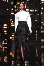 Depending on the season, Karan shifts between tailoring and dresses. This collection was mostly built on the former. All manner of jackets, from blazers to a leather bomber, were belted at the midriff above tapering trousers or narrow skirts. Her evening dresses had a modern spirit.