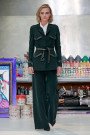Depending on the season, Karan shifts between tailoring and dresses. This collection was mostly built on the former. All manner of jackets, from blazers to a leather bomber, were belted at the midriff above tapering trousers or narrow skirts. Her evening dresses had a modern spirit.