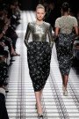Donna Karan’s whole career has been inspired by New York City. For Fall she used the nighttime skyline as a backdrop for the runway, and made the blacks and grays of the buildings and the glinting golds of their lights her show’s central colors. Perched on platform sandals or boots, the collection’s long, lean silhouette owed something to the city’s new class of super-scrapers. New York is tall and getting taller. It’s a melting pot, too. Obi-like belts and origami folds on the one hand and opulent, burnished brocades on the other conveyed something of its multicultural glamour.