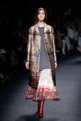 The fabric splicing intrigued — the simplicity of the two-tone white coat that opened the show to graphically collaged coats and a witty felt gilet over corduroy pants wrapped in tubes of shearling from the knees down. The diversity continued through to silhouettes; looks came long and lean, long and swingy, short and crisp, and big, bigger, biggest, with the mega-statement coming on the big side. Lagerfeld and Fendi did outrageous takes on the puffer, including out-to-there short jackets over slim skirts and some strapless dresses.