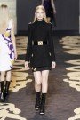 But this collection was more about fabric development, this fall with a deliberately weighty, homespun feel for daywear, often in bold colorslike dark pink, mustard, pale yellow, orange and deep red. It looked inviting in thick tweed wools but a bit itchy on mohairs. The look became ladylike thanks to Sixties retro hairdo’s. The coats were minimalist and skirts were above the knee, with off-white stockings and high heels. Some of the other looks included jersey tunics and blousons — like sweatshirts – and very simple dresses in black-tinted white silk overlaid with black lace.