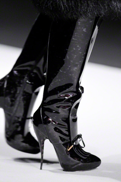 A metallic heal or pointed nose (as seen at Marni, Byblos Louis Vuitton and Just Cavalli) seems the ultimate trend (started by Louis Vuitton for Spring/Summer 2012). But why not add a touch of lace (Anna Sui), fur (Iceberg), transparent plastic (Chanel) and sparkling crystals to the mix of leathers?