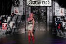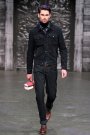 On a catwalk full of black confetti tough models appeared to the sound of howling wolves. They wore masks, hoodies and scarves around their heads to cover their faces. They even wore scary wolf masks to match the music.
