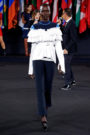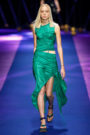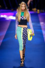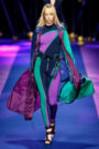 Who would have ever thought Teva sandals would appear on a Versace runway? A sign that, for SS2017 Donatella Versace was ready to change things up a bit. Adding ‘sportive’ to her usual ‘strong’ and ‘sexy’ collection. She introduced color blocked parkas and leather jackets to add to her selection of bodycon leggings, mini skirts and tight dresses. Next summer the Versace woman is going places other than cocktail parties and night clubs. But even in a midnight blue raincoat she’ll make heads turn, just like closing model Gigi did tonight.