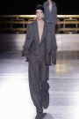 Long lean silhouettes in a palette of grays, taupes, greens and browns awaited us at Ackermann. Designs with which the designer tried to portray gracefulness through their masculinity. And so models sported gray suits with long sleeves and low V-necks. They wore skinny velvet and leather bias cut pants with short structured jackets. Floor sweeping woolen coats and dark, lean turtle neck dresses belted around the waist. If the designs and the models’ expressions didn’t breath enough carelessness, it were the hands in those pockets that added to the feeling the collection, and perhaps Ackermann himself, was at ease. Creations may have started from a menswear point of view; worn by those graceful models, looks were sophisticated and tough (especially those zip-front jackets) even sporty at times, yet never too masculine. A hounds tooth print used on the thickest kind of wool looked perfect for winter and particularly beautiful on a maxi dress paired with a black top. A sober collection with just enough fresh influences to get us excited. Simplicity at it’s finest.