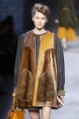 Karl Lagerfeld dared to combine two big fall trends in his Fendi collection: fur and patchwork. His patchwork fur coats came by in all shapes, sizes and colors. Yet none of those coats convinced us that the combination of fur and patchwork will become a huge hit. Especially not the first one, in white, gray and black. It looked like a mix of a panda- and a dolphin suit and didn’t do anything for the model’s body. Other patchworks in hues of beige, camel and brown were better, but never stunning. It just seemed very unnatural to combine so many different types of fur in one design.