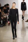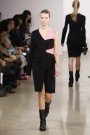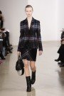 This was a different collection at Bottega Veneta. Tomas Maier switched the nonchalant chic for tough, black leather and over-designed pieces. No more sweet, simple dresses in light colors, but rather severe looking dresses in black wool, leather or mixed worn with high boots and triangle-shaped bags. There was even a loosefitting, draped overall in black.