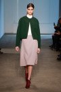 Last year the Hugo Boss group hired Jason Wu as their designer for Boss Women. Given the brand’s roots, tailoring was the focus of Wu’s first collection. Spare and minimal in cut and finish, the tailoring did have subtle femininity and movement. Wu worked in cashmere and silk in a classi palette of black, camel and gray. One of the strongest silhouettes was a long coat, slightly rounded at the shoulder, belted with an A-line skirt. It came in stricter variations with stiff collars and pretty plaid and leather panels for decorative interest.