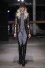Silverscreen cult favorite Nikita, Luc Besson’s femme fatale of the 90’s, was Jan Boelo’s inspiration for his fall winter 2013 collection entitled Deserted Eagle. Within Temptation’s singer Sharon ten Adel performed live during the show and that also set the tone for the vibe that surrounded the clothes: rock’n roll. Boelo’s new collection showcased skinny men’s and women’s metallics, tailored blazers and a-symmetrical cut dresses. There was also oversized outerwear, corduroy suits and ballet-inspired cross-over tops. Fringes, hats and wrapped scarves gave it all a bohemian look and feel.