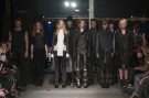 It was Geraldo da Conceicao’s debut collection for Sonia Rykiel, since the brand got it’s new owners Fung Brands Ltd. last year. For his first collection he managed to mix Sonia’s signatures with his own skills and preferences. Knitted suits with playful buttons opened the show, followed by a selection of knitted dresses that fully breathed Rykiel. The next black leather, more architectural pieces seemed more of Geraldo’s personal thing yet they were quickly followed up by more knitwear. Casual pieces worn by bra-less models and business chic designs like a baby pink suit jacket and a baby blue ensemble. A trio of printed tunics perhaps looked a bit out of place, yet the finale sweaters (with kisses and flowers) brought back that joyful Rykiel feeling. It might take a while before Geraldo da Conceicaso has fully found the right direction he wants to go with the brand, but he’s on the right track.