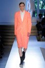 Jimmy Sommerville and Marianne Faithful were on the soundtrack of Jil Sanders menswear ss14 collection. Centre of this collection were crisp jackets and trim coats in cream, neon, black and white, the tailoring was boxy and lean. The neon popped up on cuffs and hems of loose white blousons and also edgings the inside-out seams of black blazers and trousers.