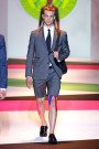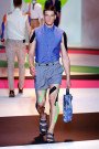 Creative director Massimiliano Giornetti used mustard, burnt orange, light blue, tomato and olive for his ummer suits worn with white shorts, or trousers and jackets in a texture cotton. He took the numbers 1, 2 and 4, inflated them, and placed them on stiff cotton sleeveless shirts and tunic tops, tanks, and knits.