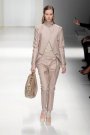 They were either matched with slim pants and ankle boots in the same shade or skirts and knee high, peep toe boots in which many of the girls almost took a tumble. Massimiliano Giornetti worked with lots of different styles and fabrics. He used mesh tops, suede and leather together in one look and thanks to the fact that he did every look in just one color that worked out perfectly.