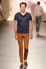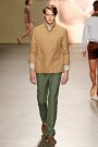 Inspired by the prewar Japan and traditional Japanese music, Min‘yō (the name of the collection) representing the idea of continuation, Sjaak Hullekes presented a very well tailored, wearable and cohesive collection. To the sounds of a live cello in the corner of the catwalk (yet another form of live music this week) the male models appeared. They wore small fitting pleated pants, elegant shirts, non-lined safari jackets and handmade nature-inspired loafers. And Sjaak’s favorite piece, a terracotta shaded safari jacket with a collar and pockets in a contrasting fabric, indeed was one of the showstoppers of the collection.