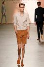 The glow in the dark-effect on the ivory clothes of Alexander Wang was a cool ending to his ss2013 presentation. The impression left after a very fast show was one of sharp, minimalist sport. There were boxy “hockey jerseys” worn over tailored shorts — skinny and Bermuda styles — and some of the models wore lacquered porcelain helmets. Wang rarely strayed from black and white, and when he did, it was a few notes of beige leather and gray. The silhouette was spare and crisp, in stark cotton and exotics, such as snakeskin.