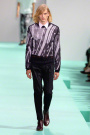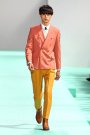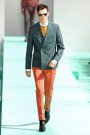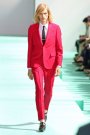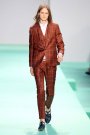 Paul Smith seemed very optimistic regarding his crisp and colorful collection. Smith’s signature slim silhouettes reminded us of the Mods — the double-breasted suit jackets had strong shoulders and were paired with ankle-length pants in mismatched shades of peach, mustard and teal. A more laid-back vibe came in cotton or leather biker and blouson jackets. The whole collection offered a modern spin on Smith’s very British tailoring.