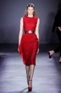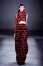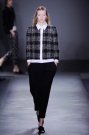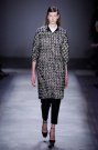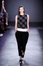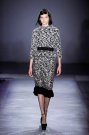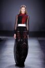 For next winter Giambattista Valli presented quite a sober collection. He showed knit dresses, checked coats, knee length skirts and sleeveless tops all with one and the same focus point; a wide belt around the models’ waists. Perhaps the designs were a little less sexy than in a average Valli collection, but it definitely fit right in with today’s trends. Looks were cosy and appeared perfect for a cold winter day. Yet some of these looks can be deceiving since some of the knits were actually trompe l’oeil effect printed on airy fabrics. Still, no matter what choice of fabric all outfits were perfectly balanced. Tops looked as great with fur-ish skirts as they did with transparent pleated ones. Some full on graphical printed (and colored) looks (Marni-ish) and a golden croc leather coot stayed classy. And the sheer evening gowns which ended the show mixed covered sexiness with sophistication in a unique way. Now that is how you present a wearable cohesive collection.
