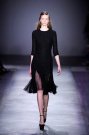 Pilati’s last collection was one of dark sensuality, something he presented before. The models looked perfectly glamorous and they were dressed in a style of aggressive femininity, thin black silhouettes, cinched waists and lots of leather. Jackets had strong shoulders, pants and skirts were lean and sleek. More intimidating were the dresses in colored mesh, like the harness of a knight.