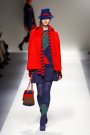 Strength and the power of beauty, those seemed to be the idea s behind the Prada fall 2012 collection. The clothes were elegant, though a bit heavy sometimes, and contained all the classic elements Prada’s known for: the black, the appliqued stones, the suit, the awkward colors and vintage prints. New was the layered silhouette, that sometimes reminded of the way modern Muslim-women dress. The tailoring emphasized the high waist and long line as well as pants. Black dominated, followed by mustard, blue, orange and brown/pink. There were belted jackets, coats, tunics and dresses topping pants which were cut above the ankles.