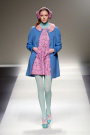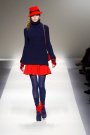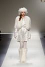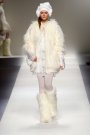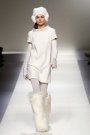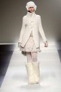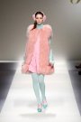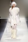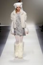 First we met with her college girls, dressed red, blue and green in argyle sweaters and toggle coats. Then Anna introduced her pastel pretties, in fur light colored looks, topped off by pastel shades earmuffs. The third group of models were Blugirl’s Snowbunnies in fully white and off white outfits which had a shiny detail here and there. And models in party dresses (black from head to toe) closed the show.