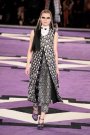 In the show notes designer Ennio Capasa of CnC Costume Nationel explained his collection was about ‘an imaginative woman in a virtual metropolis’ who is ‘post-punk, post-chic but above all technological’. Like the Girl with the Dragon Tattoo? It’s clear that this type of tough girl is inspiring more designers, if not the colthes it’s the beauty of Rooney Mara (her dark, short hair and black make-up). Fabrics were extra shiny, like a slick patent leather. Capasa used it for robust outerwear in boxy shapes with diagonal zippers. The result was futuristic and a bit aggressive.