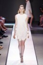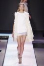 It was as if we were watching a show full of angels as the Giambattista Valli models were all dressed in white and light-colored designs. As simple as the designs were, as creative were the fabric choices. The show opened with a fur-like material, followed by zebra-printed satin, white lace and shiny, silver embroidered fabric.
