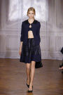 Peter Copping presented and very chic and very French collection at Nina Ricci. But is was also charming and flirting with that typical Sixties haute couture vibe. The silhouette was curvy, the clothes bejeweled and the straw cage hats added an elegant touch. Starting with constructed lingerie, Copping showed suited looks and dresses, both with full skirts and an hourglass silhouette, in laces, cloqués and printed jacquards. He embellished with delicate patchworks and encrustations of high-sparkle embroideries.