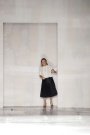The models at the Fendi-show looked like housewives from the Sixties with their beehive hair and pleated dresses with apron-fronts. The collection Karl Lagerfeld presented reminded us of women cooking, baking and cleaning dressed in stiff apron-like dresses, black and white ensembles, bermudas and jackets. It was a no nonsense chic, with the fly-eye shades and cotton jackets, featuring bare shoulderparts and soft, shapely cuts to match the full skirts.