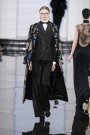 The designers played their signatures with rich, highly engineered fabrics. The kaleidoscopic results looked unmistakably theirs. The slouchy cut of their pants, the undone way the back hem of a black suede camp shirt was shown untucked over a slim pencil skirt, or how a party dress with an asymmetric neckline was layered over a black tee. The fabric innovation made things look quite new. Two great patent shearlings, pressed flat and cut with clean, sharp lines, required a double take. Chunky, viscose and leather knits worked a cozy street effect. What was most impressive about this collection was that Hernandez and McCollough’s took traditionally homespun themes and made them look sophisticated and even edgy. When did crafted clothes looked so cool?