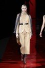 This was a different collection at Bottega Veneta. Tomas Maier switched the nonchalant chic for tough, black leather and over-designed pieces. No more sweet, simple dresses in light colors, but rather severe looking dresses in black wool, leather or mixed worn with high boots and triangle-shaped bags. There was even a loosefitting, draped overall in black.