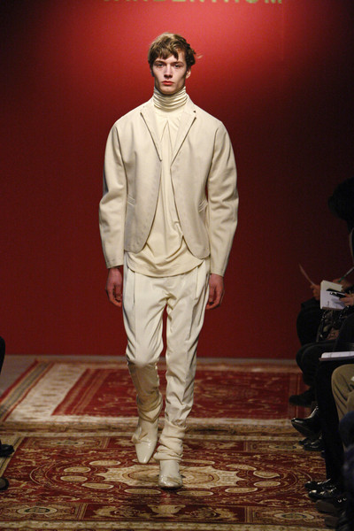 One of the good things of Dutch designer Francisco van Benthum is that he refuses to give up. He believes in himself and his power as a designer, and that deserves a lot of respect. Especially in these days, where big labels with big money try to blow you away when they can. Francisco presented a collection which showed a more classic side of his signature. His softer, fluid silhouet still exists with a more rounded shoulder for jackets, but he added some British flavor with cropped jackets in a small Higgins-check, slim dinner-jackets and cardigans. He mixed the formal with the casual – and addded also some sportswear. Hopefully he’ll find some clients who appreciate his love for fabrics and design. He deserves it.