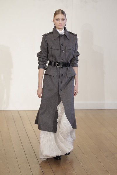 Everybody talked about Jason Wu’s inspiration, photographer Irving Penn, but you better ignore that. The designer just wanted to do something different than the princess-like clothes he’s famous for thanks to Michele Obama. So Wu took a good look at menswear – that’s where the personal style of Penn comes along – and morphed influences into pretty womenswear with a mannish touch. He presented short sleeved jackets, oversized cashmere coats, mohair sweaters and fold-over pants. The overall look had an appealing, relaxed sensibility. Grey, black, white and blue were the main colors with splashes of mustard, orange, yellow, golden and green.