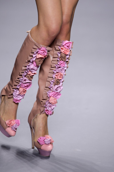 At the Jackson and Moschino fashion show it were Oxeye daisies. Yet other designers (Yves Saint Laurent, Luella Bartley, Oscar de la Renta, Dolce & Gabbana) used rose prints. Viktor & Rolf didn’t have floral prints in their clothes but they did use roses to decorate their pink boots.