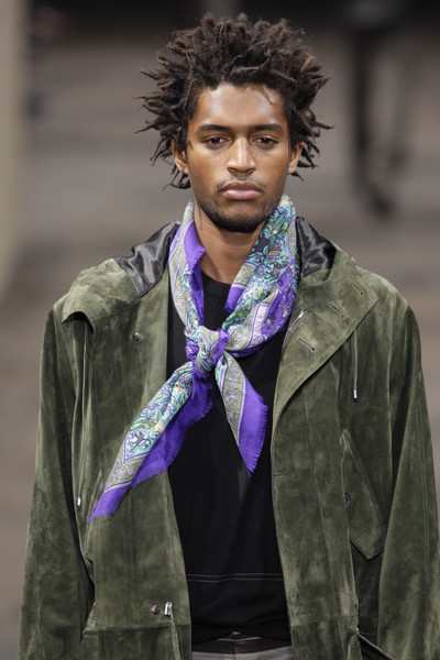The Hermès models were well-dressed and much attention was paid to every little detail. From the floral scarfs to the handkerchiefs in the breast-pockets and the chains attached to the trousers.