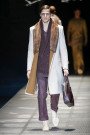 The color palette was a banquet of soothing neutrals. For all the designer’s insistence on cut, it was softness that dominated. A hooded mink coat and a Mongolian lamb backpack were its most extreme manifestations. Otherwise, jacquard-ed blousons and parkas had the comfy look and feel of blankets. The body-conscious cashmere knitwear in long cabled cardigans and even longer rib-knit tops, layered over leggings was lean and athletic. It took on an impressive masculine heft with oversized outerwear.