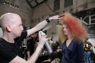 Take a look backstage at Collection Arnhem. Colorful water-paint underpinned the collection which was the students vision on the nearby future. Rollers with pink, green and blue paint were rolled over the faces; eyebrows, lashes and nails got matching colors too.