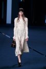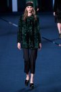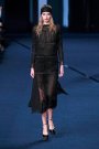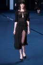 It is the second season April Chrichton is designing the collection for the house of Sonia Rykiel. This spring it’s about bold colors and style, but for next fall it’s less loud, more simple and pared down. Like the skirtsuits with a kick flare to the skirt, shrunken jackets, jumpers and little black skirts. Shades were mainly black, white and biscuit. For eveningwear the Rykiel-girl shows her flirty side, with floaty dresses, sometimes in sheer black or with puffy little sleeves.