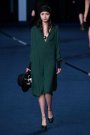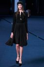Inspired by drawings of Aubrey Beardsley (an influential illustrator and writer in the late 19th century) Bill Gaytten came up with luxurious ensembles for English women. His models were all dressed up in asymmetrical capes and dresses with enormous collars, large gloves and feather fascinators as their accessories. Especially the delicate designs in pleated satin and embroidered sheer fabrics appeared graceful. Done in shades of olive green, cinnamon, light mint and ruby red they seemed perfect for winter. And even though you could see every bit of the models’ bodies through them it still made the girls look classy.